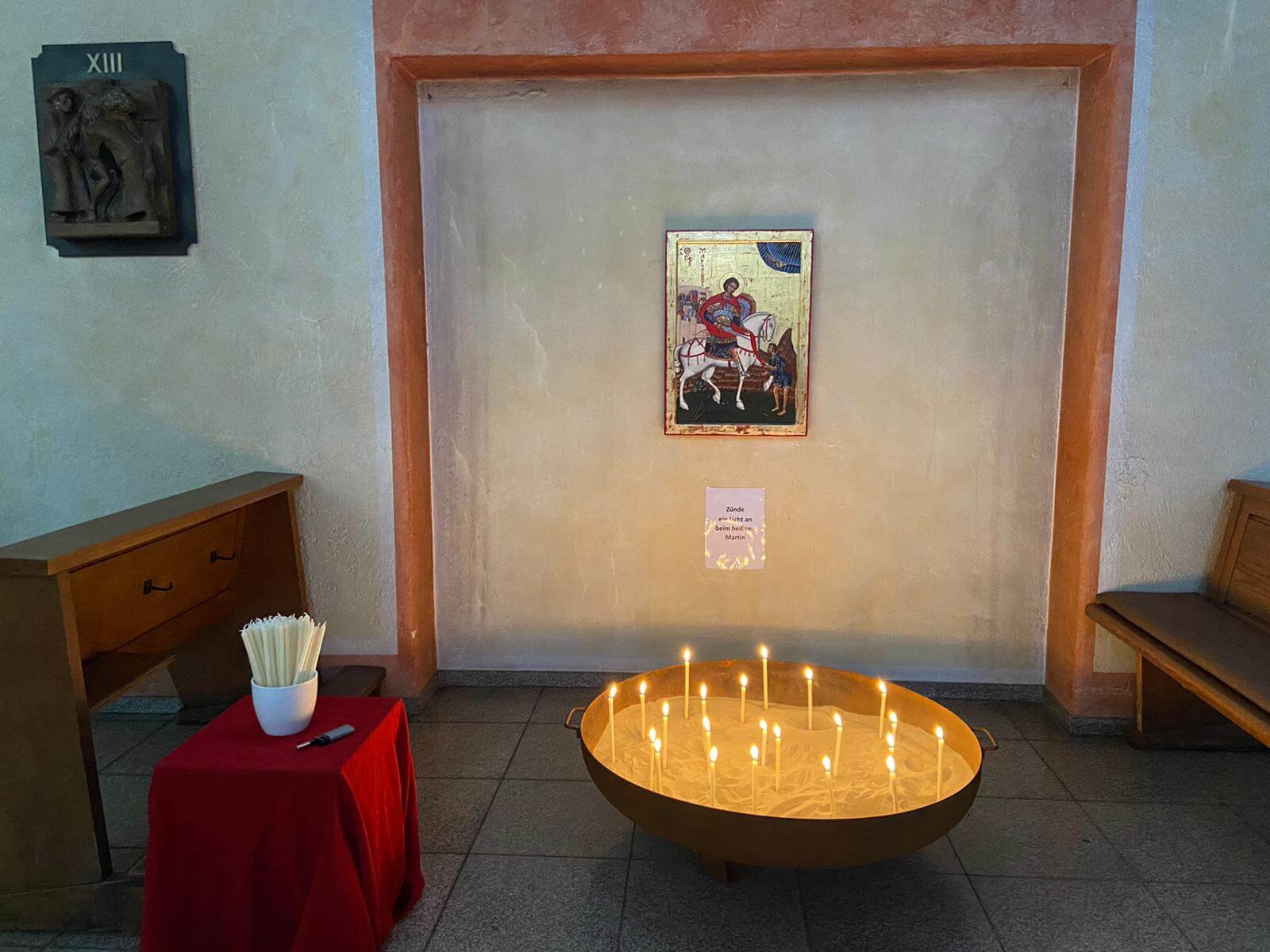 Außerdem wurden an unserer Ikone Kerzen angezündet und in den Sand der Feuerschale gestellt.