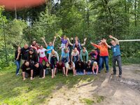 Mitte Juni verbrachten knapp 30 Familien ein gemeinsames Wochenende im Matthias-Claudius-Haus in Meschede-Eversberg. Nachdem sich alle Familien am Freitagnachmittag durch den Stau im Ruhrgebiet gekämpft hatten stiegen wir inhaltlich in das Thema "Gemeinschaft beGEISTert" in das Wochenende ein. Viele zogen sich anschließend ihr Deutschlandtrikot über, um die deutsche Mannschaft bei ihrem Auftaktspiel in die Heim-EM lautstark zu unterstützen. Die anderen zog es zum Kamin, wo der Stockbrotteig schon auf die Verarbeitung wartete.