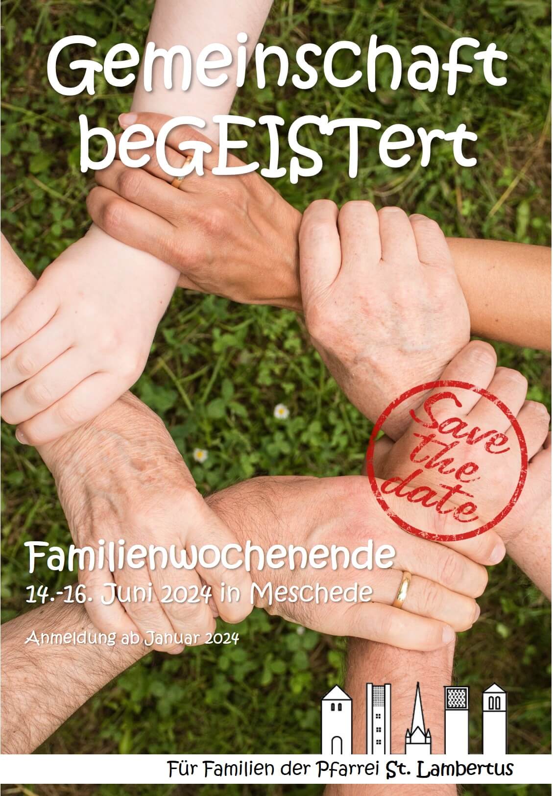 Der Termin für das Familienwochenende 2024 steht auch schon fest: Vom 14.-16. Juni 2024 sind wir wieder in Meschede zu Gast. Weitere Infos folgen Anfang des neuen Jahres.