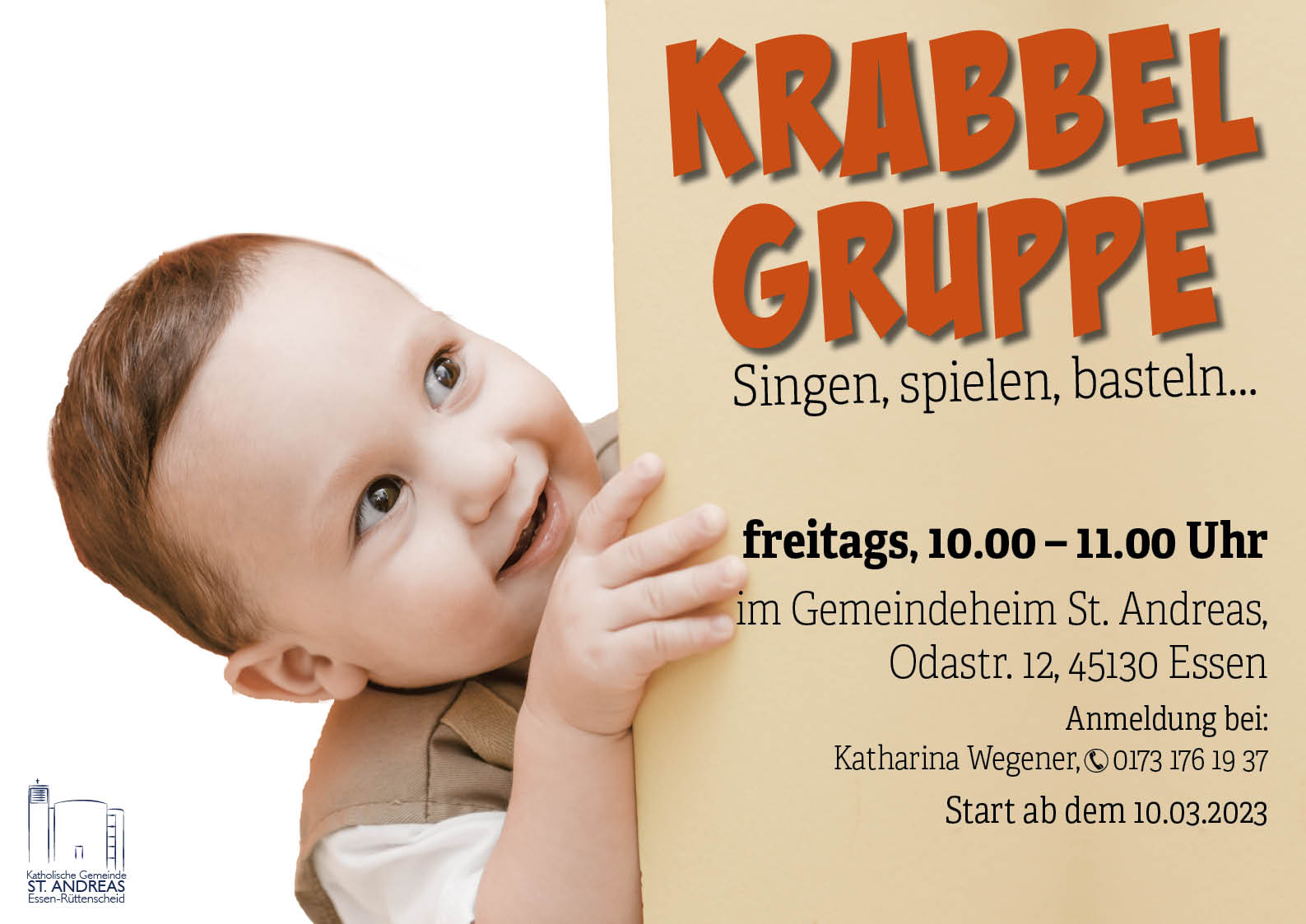freitags, 10.00 – 11.00 Uhrim Gemeindeheim St. Andreas, Odastr. 12, 45130 EssenAnmeldung bei:Katharina Wegener, 0173 176 19 37Wiederbeginn ab dem 1.09.2023