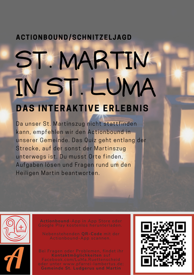 Da unser St. Martinszug auch in diesem Jahr nicht stattfinden kann, empfehlen wir den Actionbound "St. Martin in St. LuMa" in unserer Gemeinde.