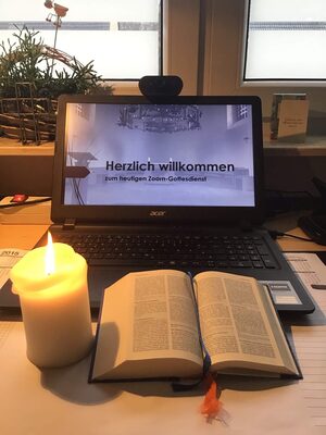 Falls mehrere Personen aus einem Haushalt an dem Gottesdienst teilnehmen, empfiehlt es sich, einen etwas größeren Bildschirm zu nutzen. Entzünden Sie gerne zu Beginn bereits eine Kerze.