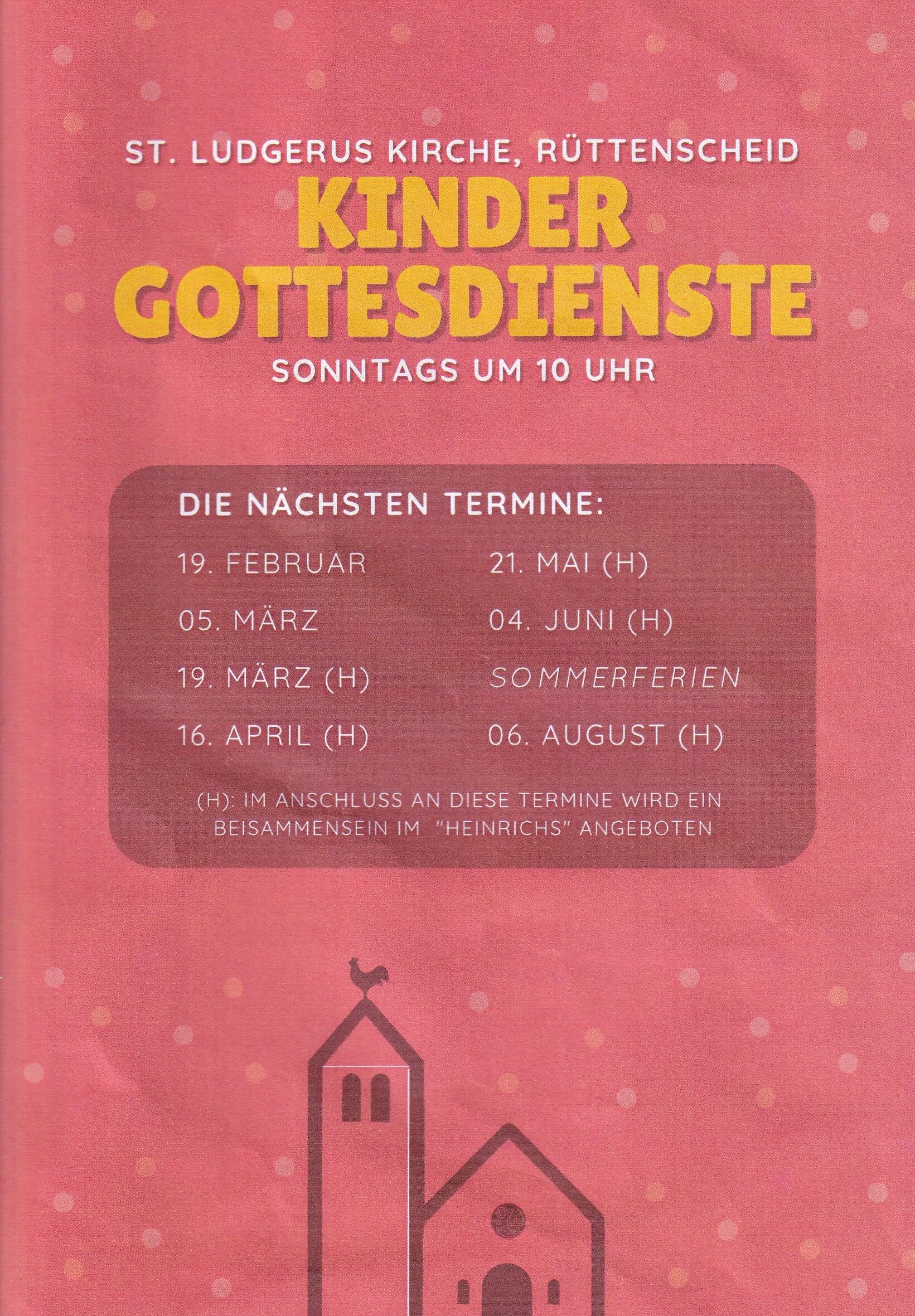 In unserer St. Ludgerus-Kirche finden regelmäßig Kindergottesdienste statt.Im Anschluss an einige Termine wird ein Beisammensein im "Heinrichs" angeboten.Wir freuen uns auf Euch!