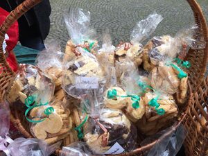 Angeboten werden die begehrten Socken, Tücher, Stulpen sowie nachhaltige Spül- oder Abschminktücher, Kekse, Liköre und diverse Kleinigkeiten.