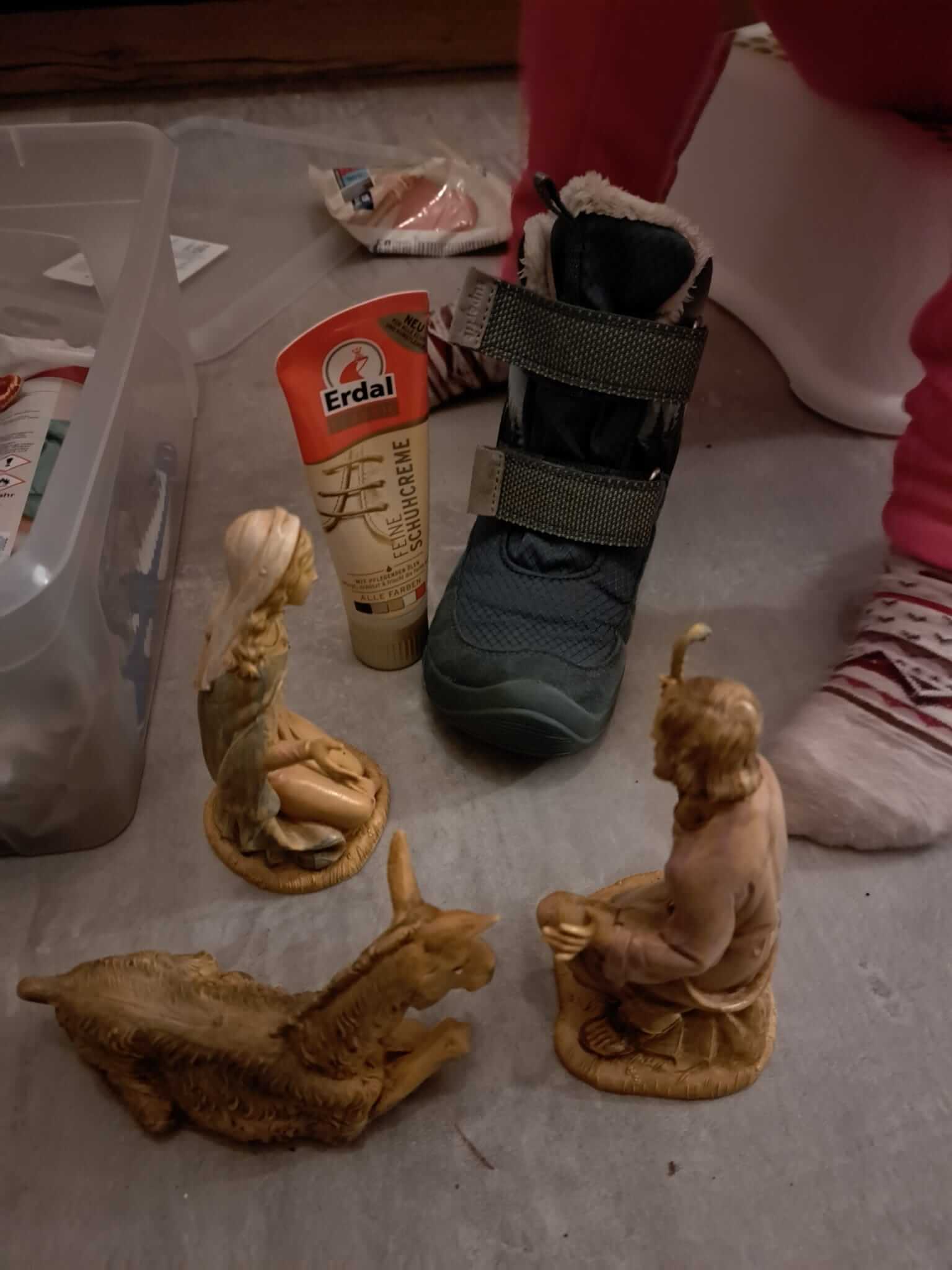 Josef wurde auf eine sogenannte Toniebox gestellt und anscheinend dachte das Kind, er würde singen. Weil ich weiß, wie Josef singt, bin ich schnell geflüchtet, aber er hat wohl den Blick von Maria gesehen und hat uns zum Glück verschont. Nicht, dass vor lauter Schreck das Kind zu früh geboren wird. Bei meiner Flucht bin ich auf einem Berg gelandet, der sich dann aber als ziemlich entspannter Typ namens Buddha entpuppte. Der hat da aber nur gesessen und nichts gemacht, das war mir dann schnell zu öde. Wir haben dann alle zusammen doch noch gesungen und so im Chor klang Josef ganz ok. In den Liedern kamen sogar zwei Menschen vor, die auch Maria und Josef heißen, das fand ich echt lustig.