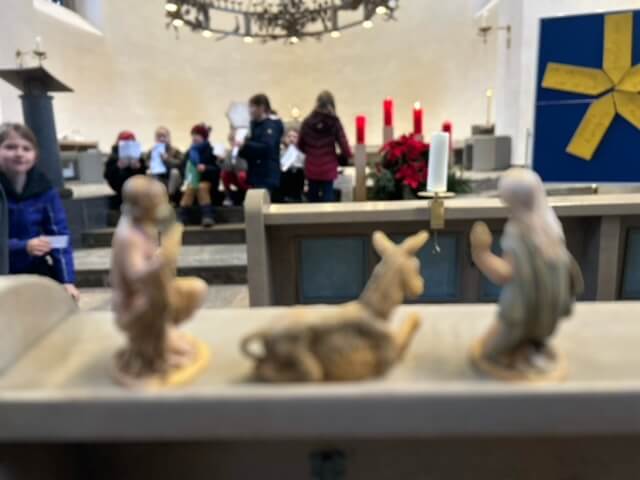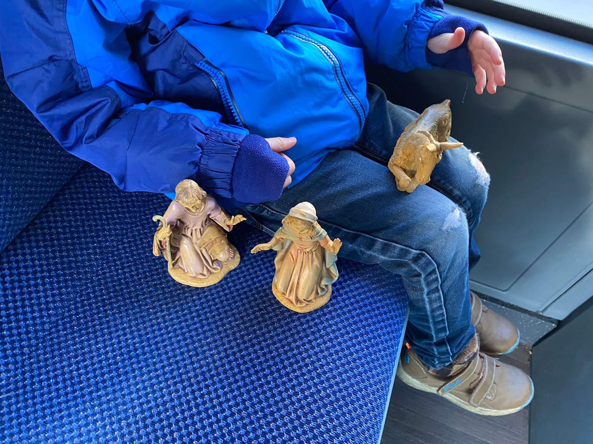 Anschließend waren wir noch bei der Probe für das Krippenspiel dabei. Die Kinder haben das schon wirklich ganz toll gemacht. Zurück fuhren wir mit einem Bus. Esel war begeistert und wollte gar nicht mehr aussteigen. Hätte es die doch vor mehr als 2000 Jahren schon gegeben, dann wäre ihm einiges an Mühe erspart geblieben.