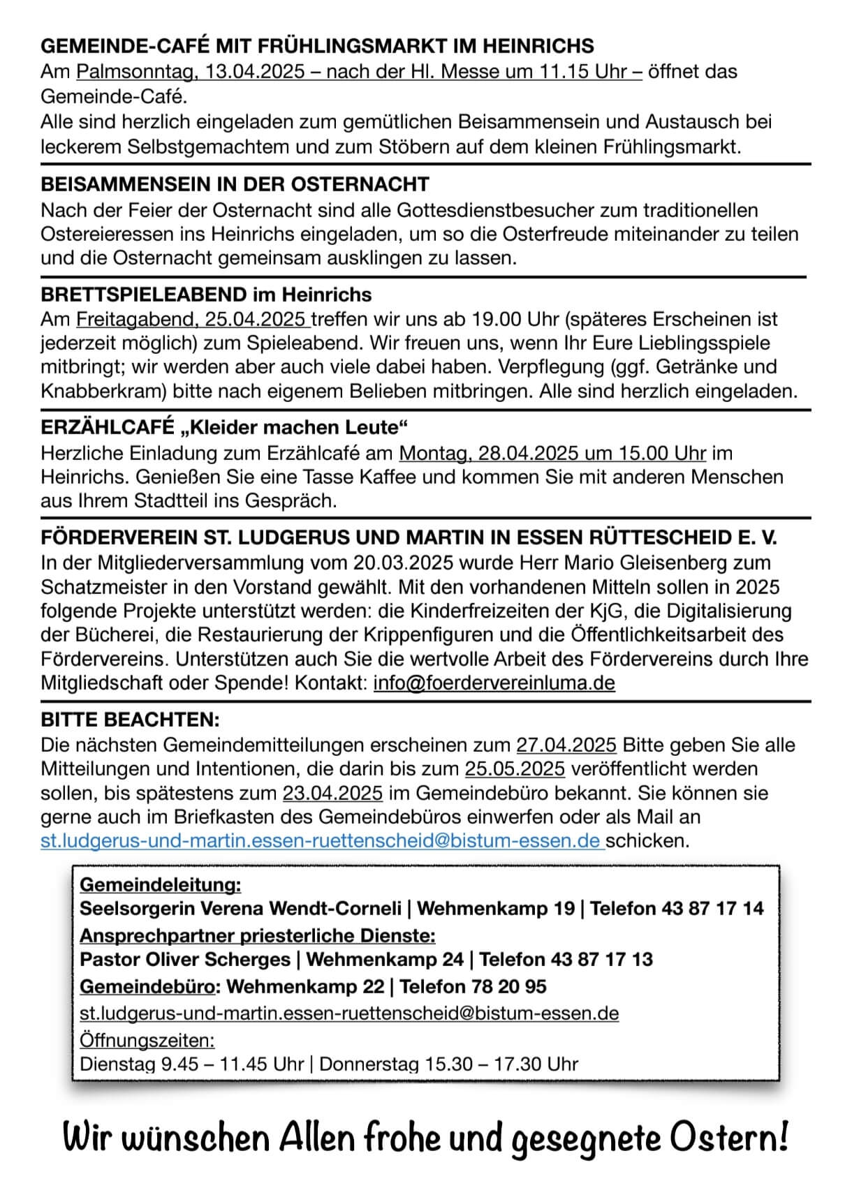 Gemeindemitteilungen der Gemeinde St. Ludgerus und Martin