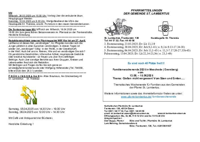 Hier finden Sie die aktuellen Gemeindemitteilungen der Gemeinde St. Lambertus in Essen-Rellinghausen: