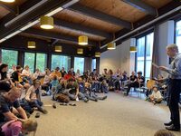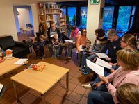 Mitte Juni verbrachten knapp 30 Familien ein gemeinsames Wochenende im Matthias-Claudius-Haus in Meschede-Eversberg. Nachdem sich alle Familien am Freitagnachmittag durch den Stau im Ruhrgebiet gekämpft hatten stiegen wir inhaltlich in das Thema "Gemeinschaft beGEISTert" in das Wochenende ein. Viele zogen sich anschließend ihr Deutschlandtrikot über, um die deutsche Mannschaft bei ihrem Auftaktspiel in die Heim-EM lautstark zu unterstützen. Die anderen zog es zum Kamin, wo der Stockbrotteig schon auf die Verarbeitung wartete.