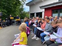 Nach dem Frühstück am Sonntag ging es an die Vorbereitung der Messe. Es mussten Fürbitten und Gebete formuliert , Bänke und Stühle nach draußen gebracht und die Musik aufgebaut werden und die Kinder schwirrten aus, um für den richtigen Blumenschmuck zu sorgen. Nach der Hl. Messe, die Pfarrer Deppe mit uns draußen gefeiert hat und in der der Hl. Geist durch den aufkommenden Wind spürbar wurde, kamen wir noch einmal zum Mittagessen zusammen.