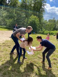 Am Nachmittag wurde das Spiel "Familienduell" schon von dem ein oder anderen sehnsüchtig erwartet. Ob Familie Kirner es schaffen würde in verschiedenen Spielen den Titel zu verteidigen? In verschiedenen Spielen, vom "NASA-Spiel", über "T-Shirt übergeben" bis hin zum "Evolution-Spiel" mussten die Familien ihr Geschick und die Teamfähigkeit unter Beweis stellen. Am Ende gab es in der "längjährigen" Geschichte des Familienduells ein Novum: Erstmals teilten sich zwei Familien den Titel und so gehörten wir am Ende des Tages alle zur Famlie Weber-Wegener!