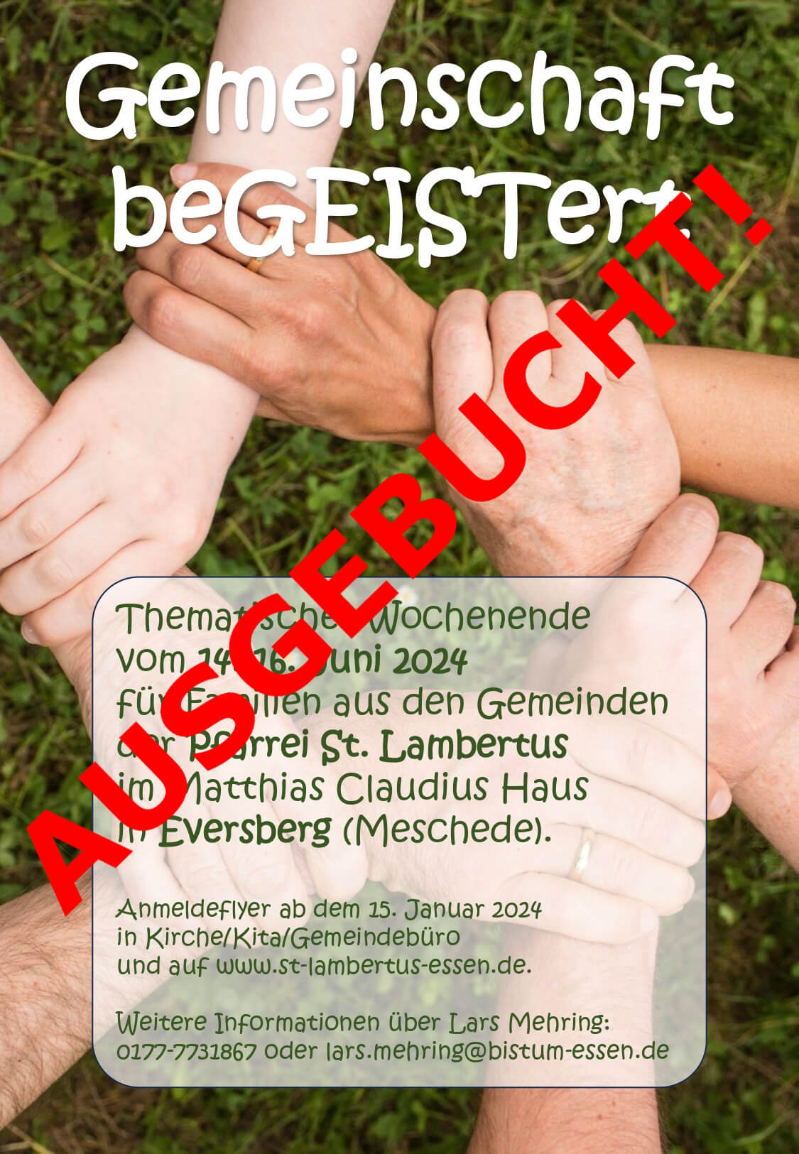 Der Termin für das Familienwochenende 2024 steht auch schon fest: Vom 14.-16. Juni 2024 sind wir wieder in Meschede zu Gast. Weitere Infos folgen Anfang des neuen Jahres.