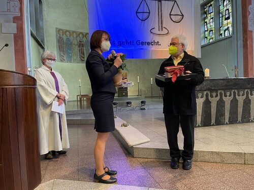Die Gemeindeleiterinnen Martina Stodt-Serve und Verena Wendt-Corneli übermittelten ihm zum Abschluss die Segenswünsche der Gemeinden St. Andreas und St. Ludgerus und Martin.