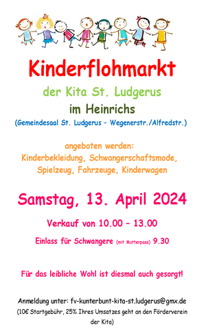 es ist wieder soweit und wir veranstalten am Samstag, 13. April unseren nächsten Kinderflohmarkt!