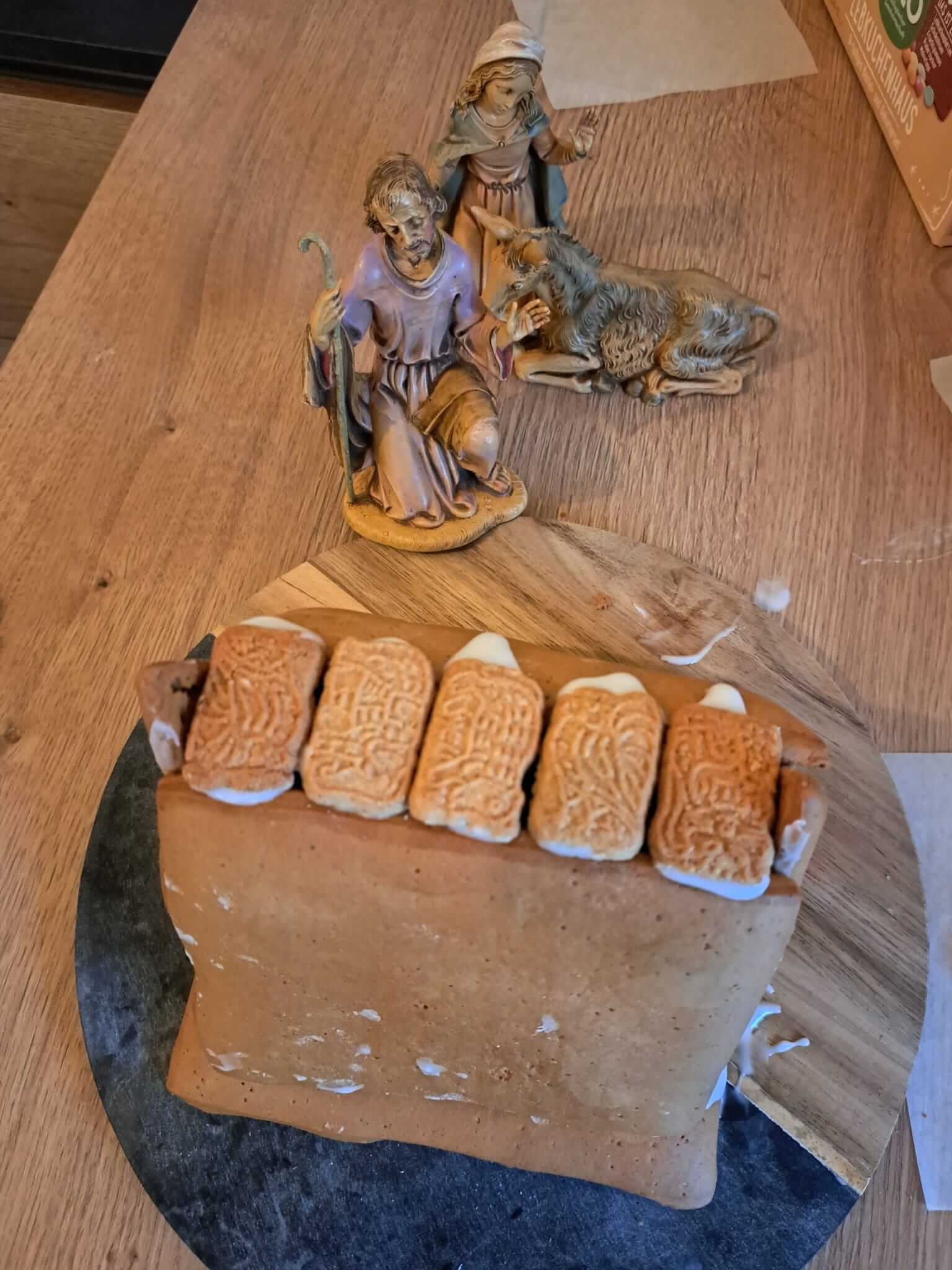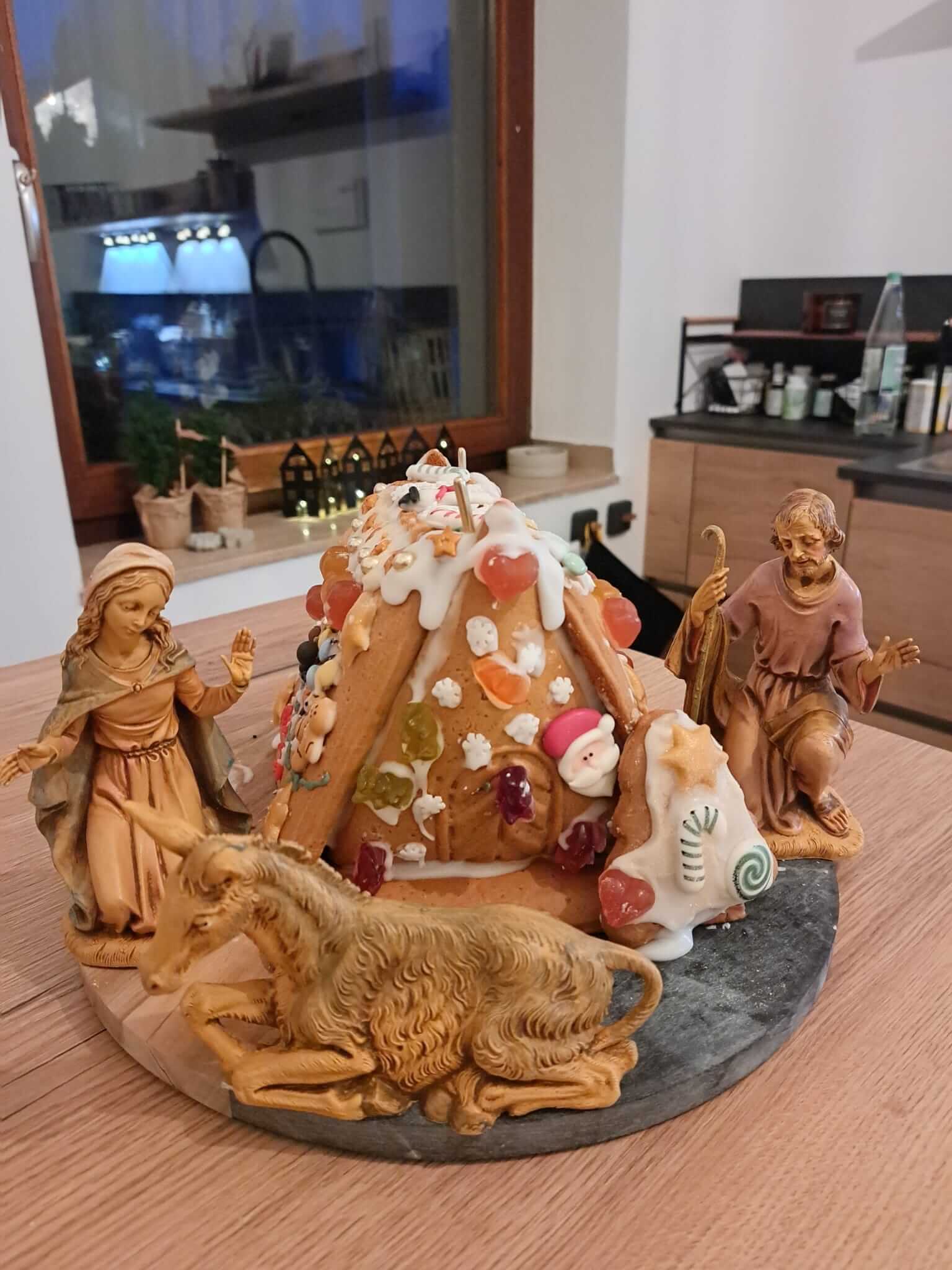 Dann wurde es spannend, wir haben ein Lebkuchenhaus aufgebaut und verziert. Das Dach war leider undicht, aber zum Glück ist Josef ja Zimmermann und hatte eine gute Idee woraufhin das Dach komplett gedeckt war. Ich dachte erst das könnte unsere nächste Herberge werden, aber wie auf dem Foto zu sehen war es doch etwas klein. Am Ende wurden noch die Stiefel geputzt, denn heute Nacht wird der Nikolaus erwartet. Dann gab es noch eine kurze Weihnachtsgeschichte und nach so viel Aufregung ging es nach dem Abendbrot schnell ins Bett. Wir sind gespannt und freuen uns auf den nächsten Tag!
