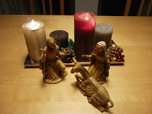 Wir kamen schon am 8. Dezember zu unserer neuen Herbergsfamilie und waren ein bisschen aufgeregt, ob alles gut funktionieren würde. Der Einzug in die neue Herberge musste sehr gut mit der vorherigen Herbergsmutter koordiniert werden, da unsere neue Familie am Abend nicht anwesend war. Dies hat aber problemlos funktioniert: Wir haben einen sicheren und trockenen Platz vorgefunden. Nach später Ankunft der neuen Herbergsfamilie konnten wir mit unserem Eselchen einen warmen Platz neben einem schönen Adventsgesteck einnehmen. Wir freuten uns alle zusammen die zweite Kerze anzünden zu können, um bei Kerzenschein ein bisschen innezuhalten.